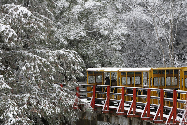 我們家第一次的太平山之旅,真的十分意想不到。對於許多生活在雪地裡的朋友來說,太平山這一點點雪其實不算什麼,但對我們家這種大驚小怪,大的很驚訝,小的很古怪的人來說,還真是很值得!不必出國就可以賞雪,還自己開車,又走進我們家最愛的大自然,看到熟悉的環境披上一層白衣,感受到台灣的冬天也可以很有雪白的意境,這種驚喜,真的要親身體驗才能瞭解呀!