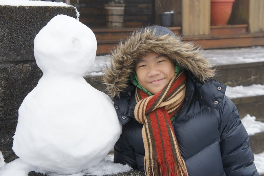 這裡有一段我們家第一次遇見雪的影片。一路開車上山,與雪相遇,真的是莫名興奮。